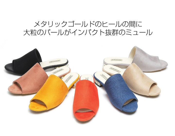Vivian ヴィヴィアン パール ローヒール ミュール サンダル レディース 大きいサイズ 小さいサイズ 歩きやすい 痛くない 夏 オープントゥ 低反発インソール スエード ブラック ベージュ グレー イエロー ピンクベージュ オレンジ デニム